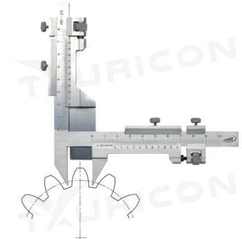 Kombinované meradlo pre meranie hrúbky aj výšky ozubených kolies